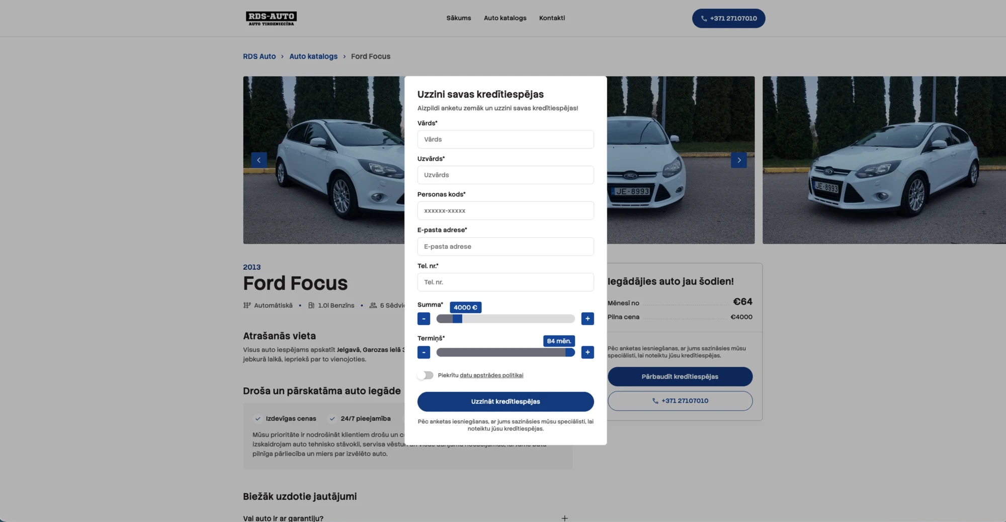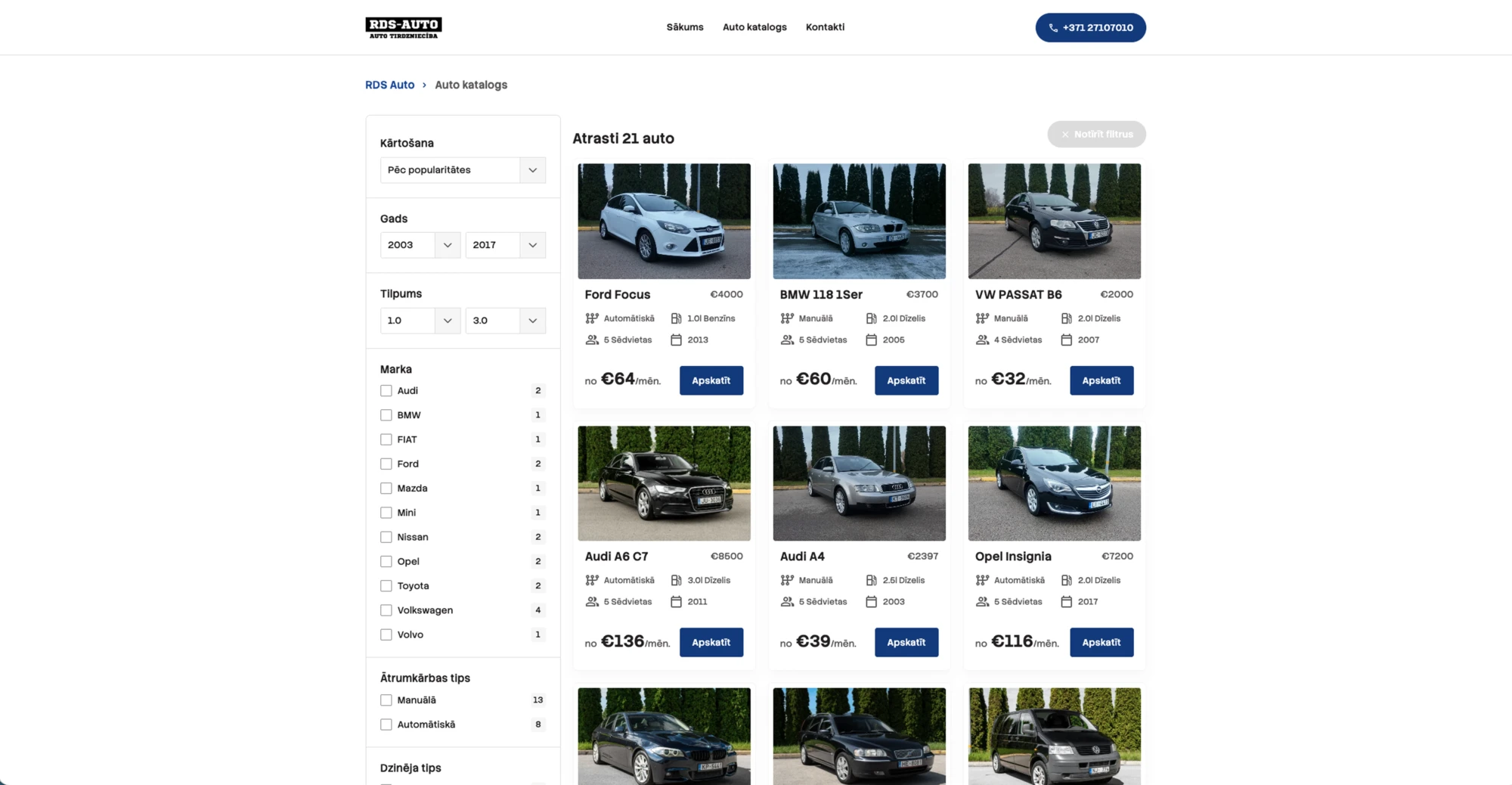 Tika radīta moderna un funkcionāla mājaslapa, kas pielāgota uzņēmuma vajadzībām. Sistēma ļauj darbiniekiem saņemt kredītu pieprasījumus, kā arī bez piepūles pārvaldīt auto katalogu — ievietot jaunus transportlīdzekļus, veikt izmaiņas esošajos un uzturēt informāciju vienmēr aktuālu. Rezultātā klienti var ātri atrast svaigāko piedāvājumu, nepieciešamo informāciju un pieteikties kredītiespēju pārbaudei.